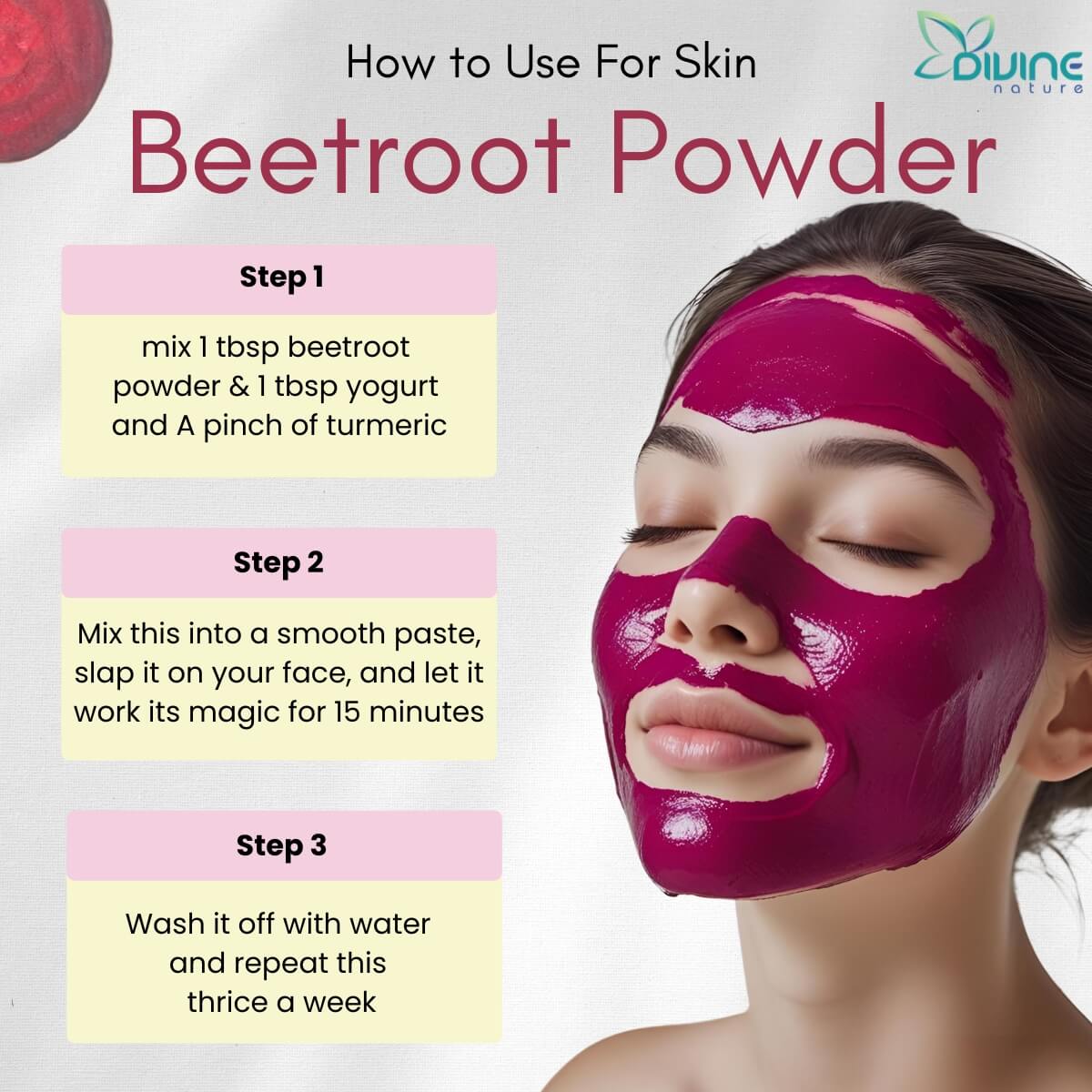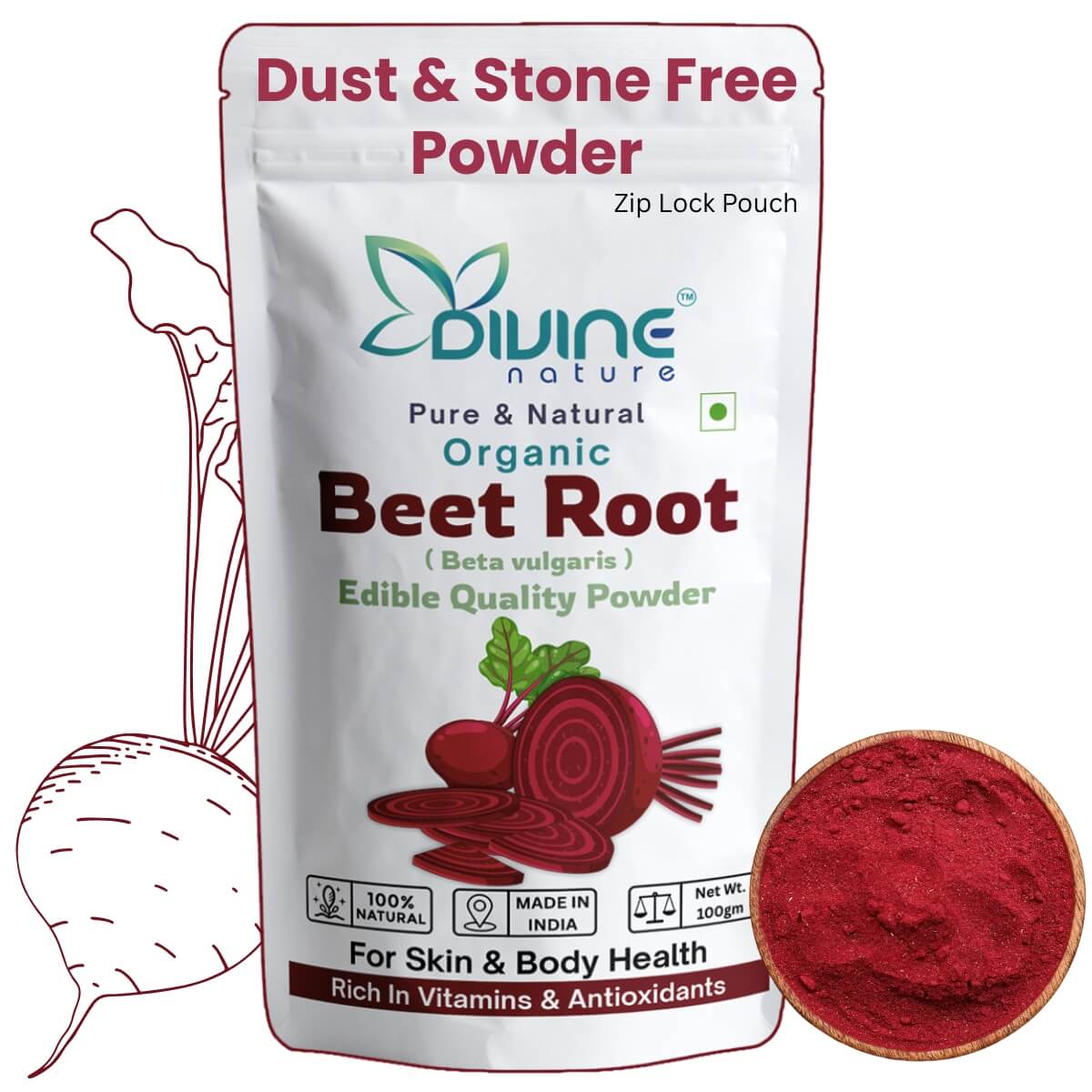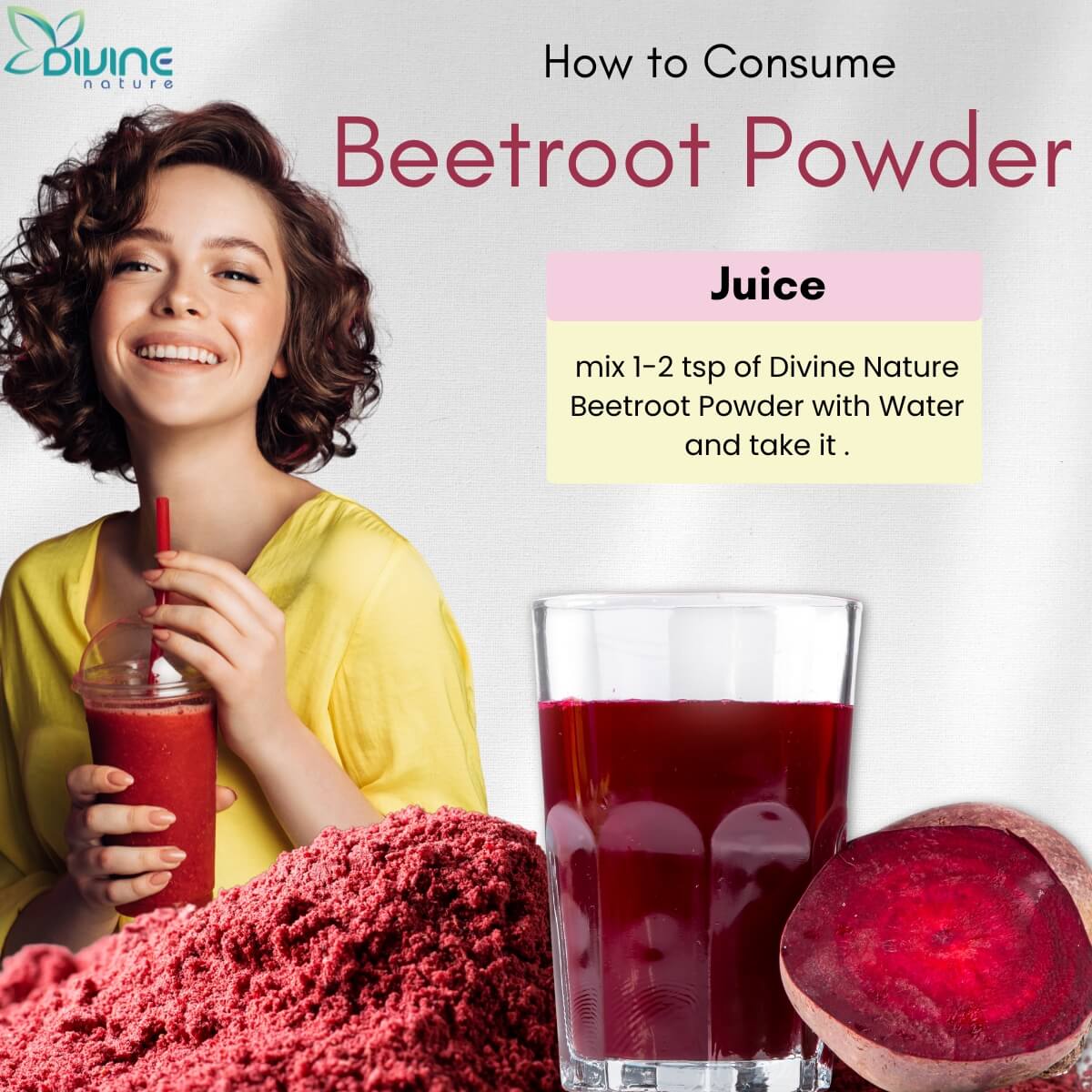 Divine Nature Pure and Natural Beetroot Powder for Face Pack Lips, Skin & Hair | Beetroot Powder For Drinking | Glowing Skin