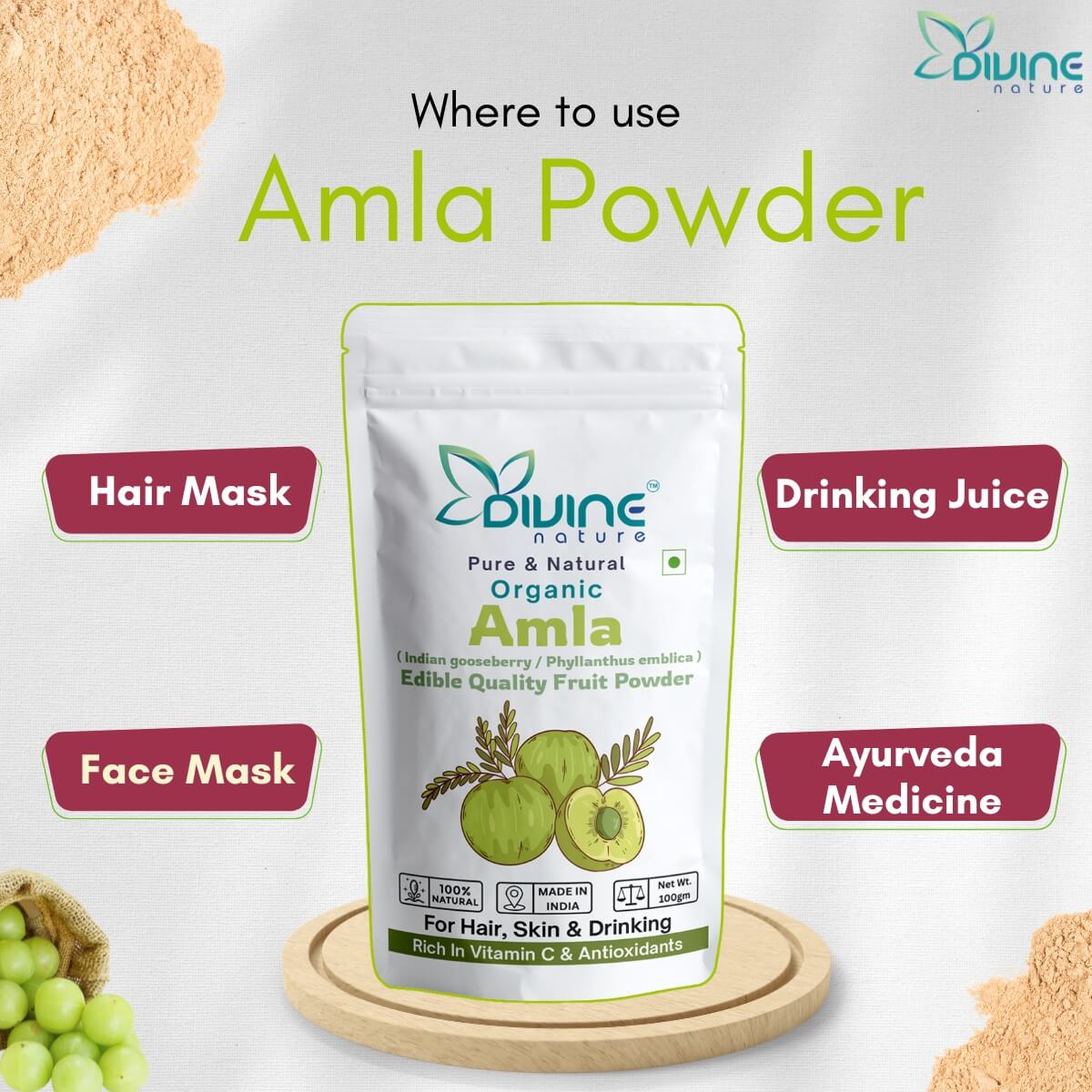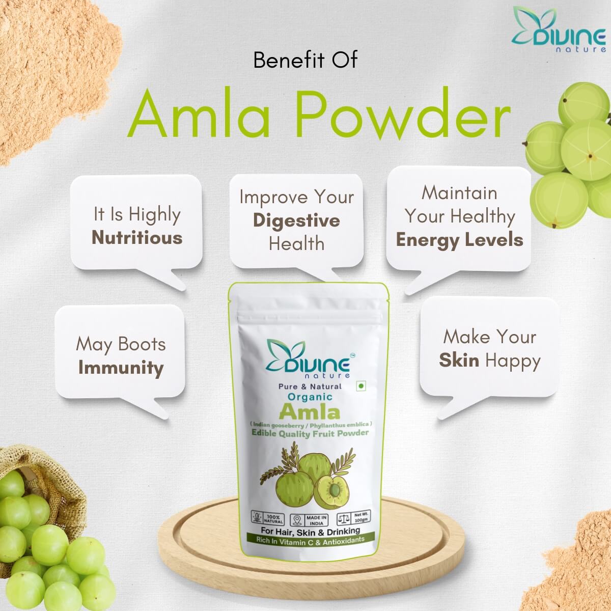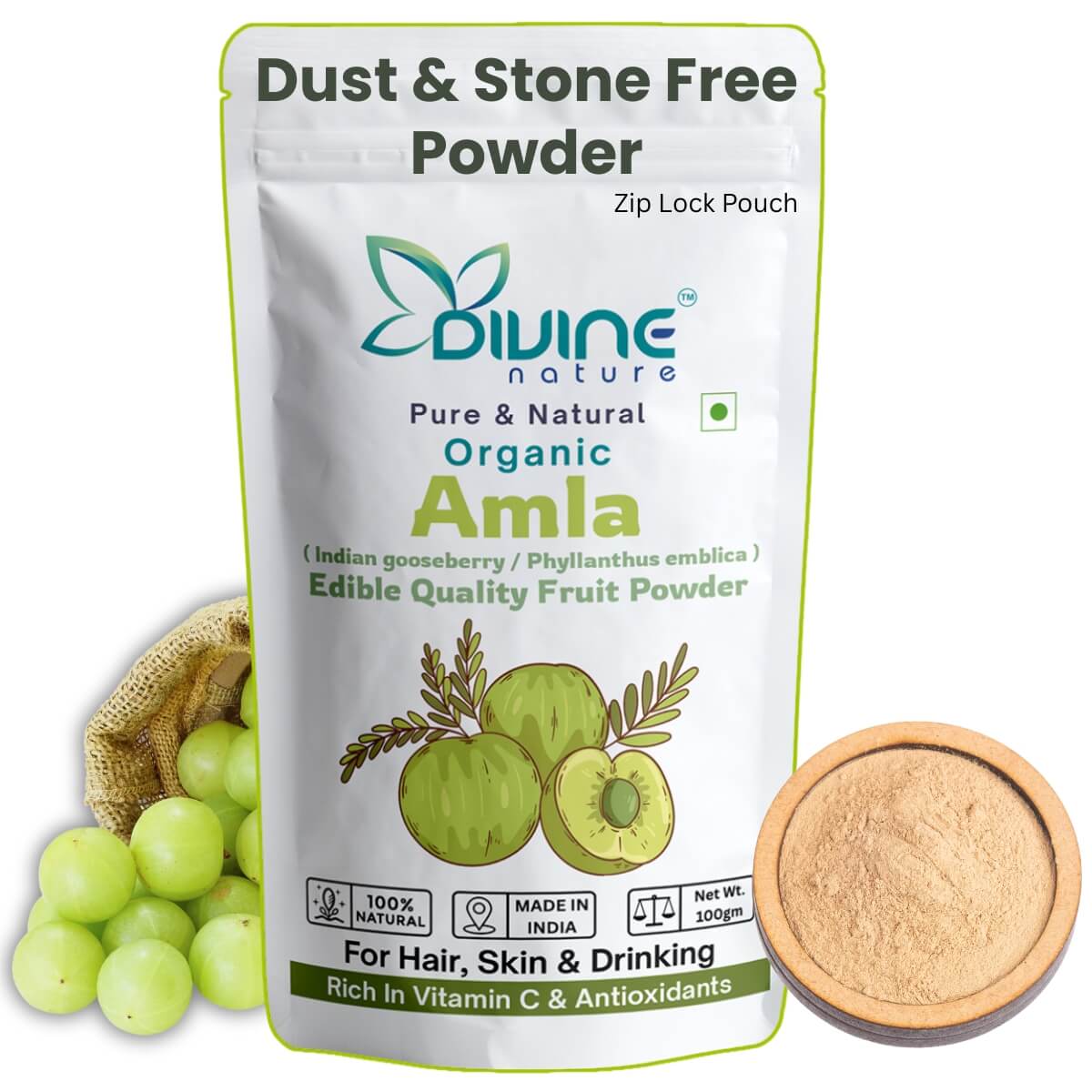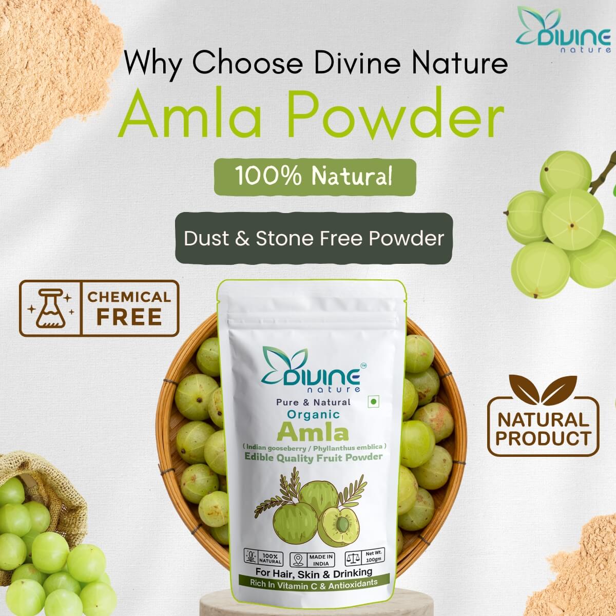 Divine Nature Pure Organic Amla Fruit Powder For Hair Growth | Indian Gooseberries Powder for Eating, Drinking, hair black and Skin